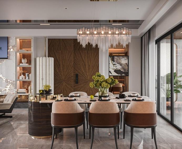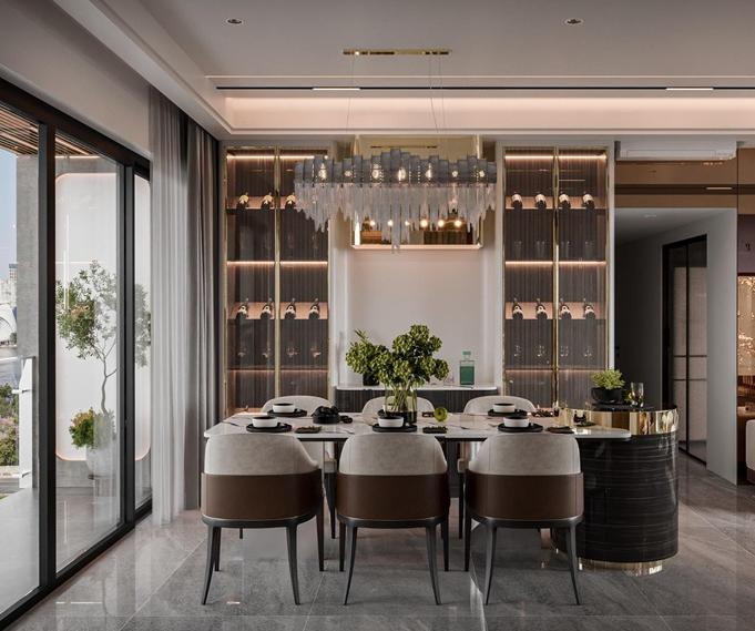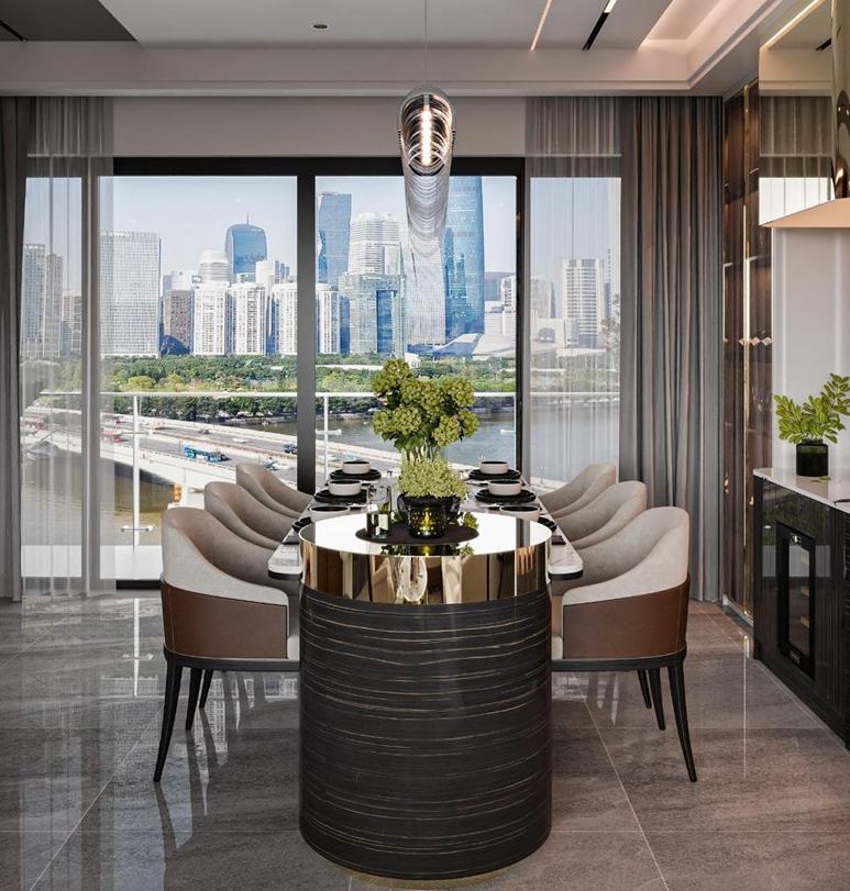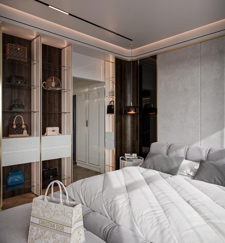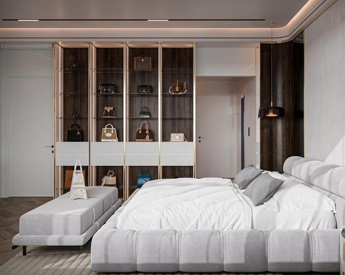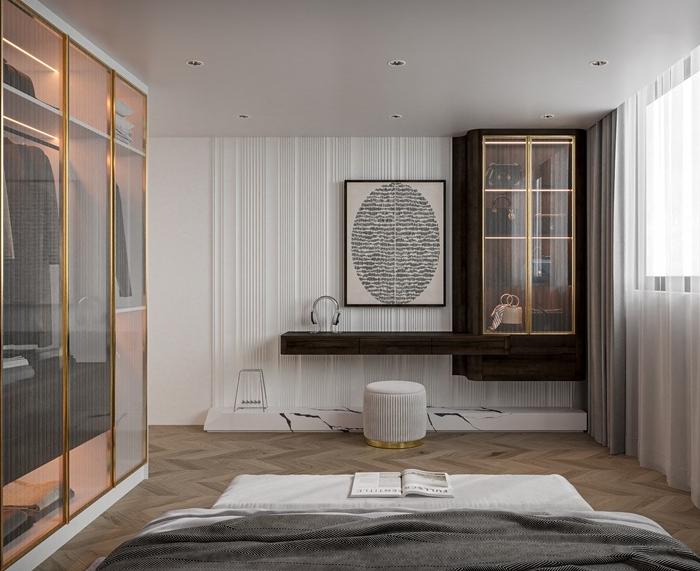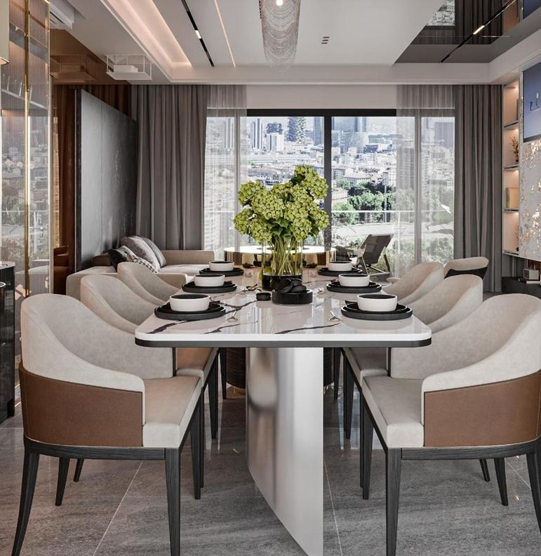 Tựa như một bản giao hưởng thanh lịch giữa hơi thở thời đại và vẻ đẹp quý phái, căn hộ 2 phòng ngủ ở Panorama Quận 7 được thiết kế theo phong cách Hiện đại. Với cấu trúc mở nhưng vẫn có sự phân tách mềm mại bằng vách ngăn kính và hệ cửa kéo sang trọng, khu vực phòng khách – phòng ăn – nhà bếp mang đến cảm giác kết nối liền mạch nhưng vẫn giữ được tính riêng tư cần thiết. Phòng khách và phòng ăn đối diện nhau, đều được chiếu sáng tự nhiên nhờ hai mặt ban công rộng – một ưu điểm hiếm có trong thiết kế căn hộ. Hai phòng ngủ đều được tối ưu công năng với tủ quần áo cao kịch trần và kệ tivi lơ lửng chiếm ít diện tích và dễ dọn dẹp.