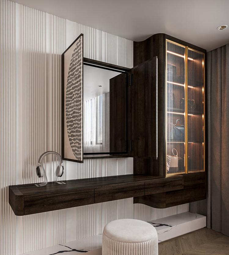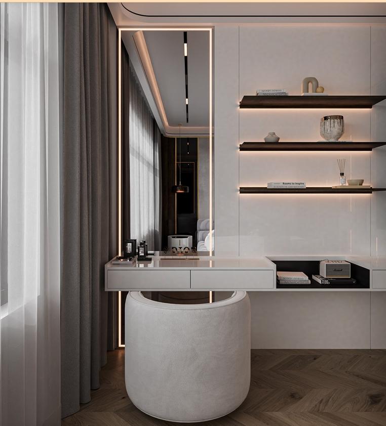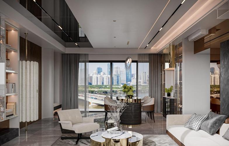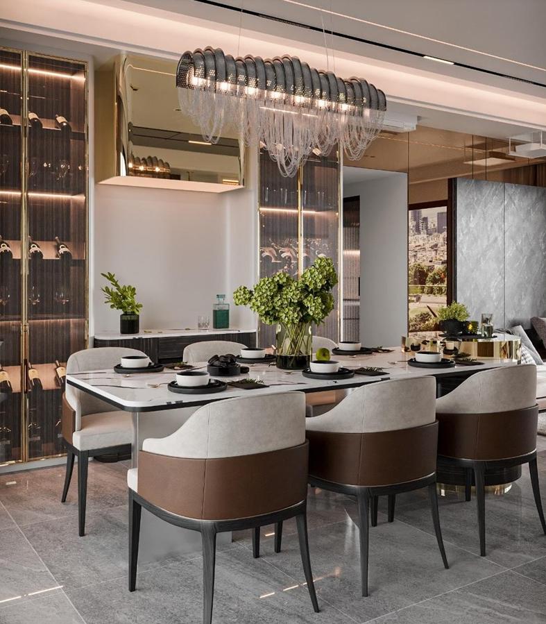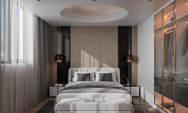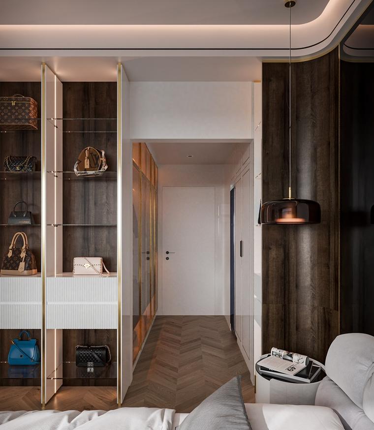 Tựa như một bản giao hưởng thanh lịch giữa hơi thở thời đại và vẻ đẹp quý phái, căn hộ 2 phòng ngủ ở Panorama Quận 7 được thiết kế theo phong cách Hiện đại. Với cấu trúc mở nhưng vẫn có sự phân tách mềm mại bằng vách ngăn kính và hệ cửa kéo sang trọng, khu vực phòng khách – phòng ăn – nhà bếp mang đến cảm giác kết nối liền mạch nhưng vẫn giữ được tính riêng tư cần thiết. Phòng khách và phòng ăn đối diện nhau, đều được chiếu sáng tự nhiên nhờ hai mặt ban công rộng – một ưu điểm hiếm có trong thiết kế căn hộ. Hai phòng ngủ đều được tối ưu công năng với tủ quần áo cao kịch trần và kệ tivi lơ lửng chiếm ít diện tích và dễ dọn dẹp.